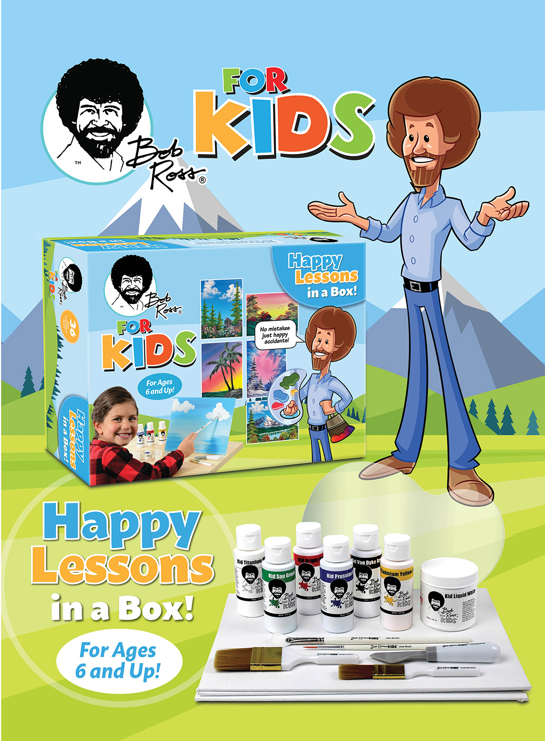 Value, standard, or deluxe party kits are perfect for any Bob Ross themed party. Include a Bob Ross cake, “Let’s Get Crazy” apron & a bingo game to really showcase your Bob Ross fan-dom. Just add friends and family, & we’ll take care of the rest.